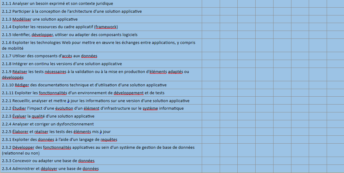 Durant mon parcour voici les différentes compétences que j'ai mis en oeuvre :